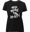 Жіноча преміум-футболка власного виробництва приталеного крою. Виготовлена з якісної тканини (95% бавовна, 5% еластан) — щільна, м'яка та приємна до тіла. Принт Need money for Infiniti можна розмістити на грудях, спині або рукаві.