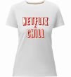 Жіноча преміум-футболка власного виробництва приталеного крою. Виготовлена з якісної тканини (95% бавовна, 5% еластан) — щільна, м'яка та приємна до тіла. Принт Netflix and chill можна розмістити на грудях, спині або рукаві.
