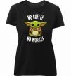 Жіноча преміум-футболка власного виробництва приталеного крою. Виготовлена з якісної тканини (95% бавовна, 5% еластан) — щільна, м'яка та приємна до тіла. Принт No coffee no workee можна розмістити на грудях, спині або рукаві.