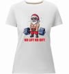 Жіноча преміум-футболка власного виробництва приталеного крою. Виготовлена з якісної тканини (95% бавовна, 5% еластан) — щільна, м'яка та приємна до тіла. Принт No lift, no gift можна розмістити на грудях, спині або рукаві.