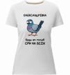 Жіноча преміум-футболка власного виробництва приталеного крою. Виготовлена з якісної тканини (95% бавовна, 5% еластан) — щільна, м'яка та приємна до тіла. Принт Олександрівна будь як голуб можна розмістити на грудях, спині або рукаві.