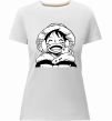 Жіноча преміум-футболка власного виробництва приталеного крою. Виготовлена з якісної тканини (95% бавовна, 5% еластан) — щільна, м'яка та приємна до тіла. Принт One Piece чб можна розмістити на грудях, спині або рукаві.