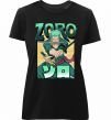Жіноча преміум-футболка власного виробництва приталеного крою. Виготовлена з якісної тканини (95% бавовна, 5% еластан) — щільна, м'яка та приємна до тіла. Принт One piece Зоро можна розмістити на грудях, спині або рукаві.