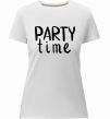 Жіноча преміум-футболка власного виробництва приталеного крою. Виготовлена з якісної тканини (95% бавовна, 5% еластан) — щільна, м'яка та приємна до тіла. Принт Party time можна розмістити на грудях, спині або рукаві.