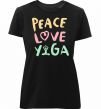 Жіноча преміум-футболка власного виробництва приталеного крою. Виготовлена з якісної тканини (95% бавовна, 5% еластан) — щільна, м'яка та приємна до тіла. Принт Peace love yoga можна розмістити на грудях, спині або рукаві.