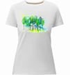 Жіноча преміум-футболка власного виробництва приталеного крою. Виготовлена з якісної тканини (95% бавовна, 5% еластан) — щільна, м'яка та приємна до тіла. Принт Пейзаж можна розмістити на грудях, спині або рукаві.
