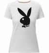 Жіноча преміум-футболка власного виробництва приталеного крою. Виготовлена з якісної тканини (95% бавовна, 5% еластан) — щільна, м'яка та приємна до тіла. Принт PLAYBOY BUNNY можна розмістити на грудях, спині або рукаві.