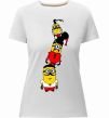 Жіноча преміум-футболка власного виробництва приталеного крою. Виготовлена з якісної тканини (95% бавовна, 5% еластан) — щільна, м'яка та приємна до тіла. Принт Посіпаки Козаки можна розмістити на грудях, спині або рукаві.