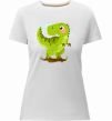 Жіноча преміум-футболка власного виробництва приталеного крою. Виготовлена з якісної тканини (95% бавовна, 5% еластан) — щільна, м'яка та приємна до тіла. Принт Щасливий динозавр можна розмістити на грудях, спині або рукаві.