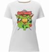 Жіноча преміум-футболка власного виробництва приталеного крою. Виготовлена з якісної тканини (95% бавовна, 5% еластан) — щільна, м'яка та приємна до тіла. Принт Рафаель Черепашки ніндзя можна розмістити на грудях, спині або рукаві.
