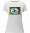 Жіноча преміум-футболка власного виробництва приталеного крою. Виготовлена з якісної тканини (95% бавовна, 5% еластан) — щільна, м'яка та приємна до тіла. Принт Рене Магрітт Фальшиве дзеркало можна розмістити на грудях, спині або рукаві.