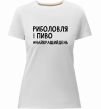 Жіноча преміум-футболка власного виробництва приталеного крою. Виготовлена з якісної тканини (95% бавовна, 5% еластан) — щільна, м'яка та приємна до тіла. Принт Риболовля і пиво можна розмістити на грудях, спині або рукаві.
