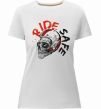 Жіноча преміум-футболка власного виробництва приталеного крою. Виготовлена з якісної тканини (95% бавовна, 5% еластан) — щільна, м'яка та приємна до тіла. Принт Ride safe можна розмістити на грудях, спині або рукаві.
