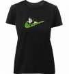 Жіноча преміум-футболка власного виробництва приталеного крою. Виготовлена з якісної тканини (95% бавовна, 5% еластан) — щільна, м'яка та приємна до тіла. Принт Рік та Морті летять на значку можна розмістити на грудях, спині або рукаві.