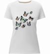 Жіноча преміум-футболка власного виробництва приталеного крою. Виготовлена з якісної тканини (95% бавовна, 5% еластан) — щільна, м'яка та приємна до тіла. Принт Малюнок метелики можна розмістити на грудях, спині або рукаві.