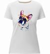 Жіноча преміум-футболка власного виробництва приталеного крою. Виготовлена з якісної тканини (95% бавовна, 5% еластан) — щільна, м'яка та приємна до тіла. Принт Малюнок бульдог можна розмістити на грудях, спині або рукаві.