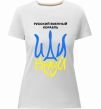 Жіноча преміум-футболка власного виробництва приталеного крою. Виготовлена з якісної тканини (95% бавовна, 5% еластан) — щільна, м'яка та приємна до тіла. Принт Русский корабль иди на уй герб можна розмістити на грудях, спині або рукаві.