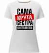 Жіноча преміум-футболка власного виробництва приталеного крою. Виготовлена з якісної тканини (95% бавовна, 5% еластан) — щільна, м'яка та приємна до тіла. Принт Сама крута сестра можна розмістити на грудях, спині або рукаві.