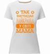 Жіноча преміум-футболка власного виробництва приталеного крою. Виготовлена з якісної тканини (95% бавовна, 5% еластан) — щільна, м'яка та приємна до тіла. Принт Так виглядає найкраща у світі мама можна розмістити на грудях, спині або рукаві.
