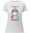 Жіноча преміум-футболка власного виробництва приталеного крою. Виготовлена з якісної тканини (95% бавовна, 5% еластан) — щільна, м'яка та приємна до тіла. Принт Shiba Inu is calling можна розмістити на грудях, спині або рукаві.