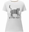 Жіноча преміум-футболка власного виробництва приталеного крою. Виготовлена з якісної тканини (95% бавовна, 5% еластан) — щільна, м'яка та приємна до тіла. Принт ШТРИХ-КОТ можна розмістити на грудях, спині або рукаві.
