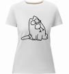 Жіноча преміум-футболка власного виробництва приталеного крою. Виготовлена з якісної тканини (95% бавовна, 5% еластан) — щільна, м'яка та приємна до тіла. Принт SIMON'S CAT з пташкою можна розмістити на грудях, спині або рукаві.