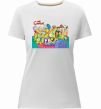 Жіноча преміум-футболка власного виробництва приталеного крою. Виготовлена з якісної тканини (95% бавовна, 5% еластан) — щільна, м'яка та приємна до тіла. Принт Сімпсони персонажі перед телевізором можна розмістити на грудях, спині або рукаві.