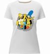 Жіноча преміум-футболка власного виробництва приталеного крою. Виготовлена з якісної тканини (95% бавовна, 5% еластан) — щільна, м'яка та приємна до тіла. Принт Сімпсони сім'я можна розмістити на грудях, спині або рукаві.