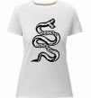 Жіноча преміум-футболка власного виробництва приталеного крою. Виготовлена з якісної тканини (95% бавовна, 5% еластан) — щільна, м'яка та приємна до тіла. Принт Snake bones можна розмістити на грудях, спині або рукаві.