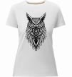 Жіноча преміум-футболка власного виробництва приталеного крою. Виготовлена з якісної тканини (95% бавовна, 5% еластан) — щільна, м'яка та приємна до тіла. Принт Сова черепи можна розмістити на грудях, спині або рукаві.