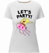 Жіноча преміум-футболка власного виробництва приталеного крою. Виготовлена з якісної тканини (95% бавовна, 5% еластан) — щільна, м'яка та приємна до тіла. Принт Sponge Bob lets party можна розмістити на грудях, спині або рукаві.