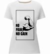Жіноча преміум-футболка власного виробництва приталеного крою. Виготовлена з якісної тканини (95% бавовна, 5% еластан) — щільна, м'яка та приємна до тіла. Принт Stay strong no pain no gain можна розмістити на грудях, спині або рукаві.