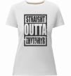 Жіноча преміум-футболка власного виробництва приталеного крою. Виготовлена з якісної тканини (95% бавовна, 5% еластан) — щільна, м'яка та приємна до тіла. Принт Straight outta Zhytomyr можна розмістити на грудях, спині або рукаві.