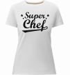 Жіноча преміум-футболка власного виробництва приталеного крою. Виготовлена з якісної тканини (95% бавовна, 5% еластан) — щільна, м'яка та приємна до тіла. Принт Super Chef можна розмістити на грудях, спині або рукаві.