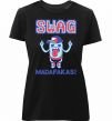 Жіноча преміум-футболка власного виробництва приталеного крою. Виготовлена з якісної тканини (95% бавовна, 5% еластан) — щільна, м'яка та приємна до тіла. Принт SWAG Madafakas можна розмістити на грудях, спині або рукаві.