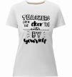 Жіноча преміум-футболка власного виробництва приталеного крою. Виготовлена з якісної тканини (95% бавовна, 5% еластан) — щільна, м'яка та приємна до тіла. Принт Teachers open door можна розмістити на грудях, спині або рукаві.
