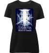 Жіноча преміум-футболка власного виробництва приталеного крою. Виготовлена з якісної тканини (95% бавовна, 5% еластан) — щільна, м'яка та приємна до тіла. Принт The Doors break on through можна розмістити на грудях, спині або рукаві.