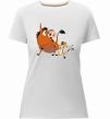 Жіноча преміум-футболка власного виробництва приталеного крою. Виготовлена з якісної тканини (95% бавовна, 5% еластан) — щільна, м'яка та приємна до тіла. Принт Тімон і Пумба можна розмістити на грудях, спині або рукаві.