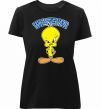 Жіноча преміум-футболка власного виробництва приталеного крою. Виготовлена з якісної тканини (95% бавовна, 5% еластан) — щільна, м'яка та приємна до тіла. Принт Tweety whatever можна розмістити на грудях, спині або рукаві.