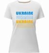 Жіноча преміум-футболка власного виробництва приталеного крою. Виготовлена з якісної тканини (95% бавовна, 5% еластан) — щільна, м'яка та приємна до тіла. Принт Ukraine різними кольорами можна розмістити на грудях, спині або рукаві.