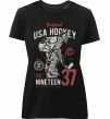 Жіноча преміум-футболка власного виробництва приталеного крою. Виготовлена з якісної тканини (95% бавовна, 5% еластан) — щільна, м'яка та приємна до тіла. Принт USA Hockey можна розмістити на грудях, спині або рукаві.