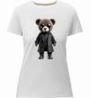 Жіноча преміум-футболка власного виробництва приталеного крою. Виготовлена з якісної тканини (95% бавовна, 5% еластан) — щільна, м'яка та приємна до тіла. Принт Ведмедик в плащі можна розмістити на грудях, спині або рукаві.