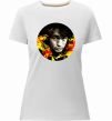 Жіноча преміум-футболка власного виробництва приталеного крою. Виготовлена з якісної тканини (95% бавовна, 5% еластан) — щільна, м'яка та приємна до тіла. Принт Віктор Цой можна розмістити на грудях, спині або рукаві.