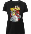 Жіноча преміум-футболка власного виробництва приталеного крою. Виготовлена з якісної тканини (95% бавовна, 5% еластан) — щільна, м'яка та приємна до тіла. Принт Вкуси мій блискучий металевий зад можна розмістити на грудях, спині або рукаві.