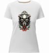 Жіноча преміум-футболка власного виробництва приталеного крою. Виготовлена з якісної тканини (95% бавовна, 5% еластан) — щільна, м'яка та приємна до тіла. Принт Вовк в овечій шкурі можна розмістити на грудях, спині або рукаві.