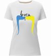 Жіноча преміум-футболка власного виробництва приталеного крою. Виготовлена з якісної тканини (95% бавовна, 5% еластан) — щільна, м'яка та приємна до тіла. Принт ВУСА можна розмістити на грудях, спині або рукаві.