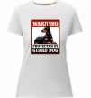Жіноча преміум-футболка власного виробництва приталеного крою. Виготовлена з якісної тканини (95% бавовна, 5% еластан) — щільна, м'яка та приємна до тіла. Принт Warning Doberman можна розмістити на грудях, спині або рукаві.