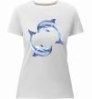 Жіноча преміум-футболка власного виробництва приталеного крою. Виготовлена з якісної тканини (95% бавовна, 5% еластан) — щільна, м'яка та приємна до тіла. Принт Watercolor dolphins можна розмістити на грудях, спині або рукаві.