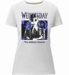 Жіноча преміум-футболка власного виробництва приталеного крою. Виготовлена з якісної тканини (95% бавовна, 5% еластан) — щільна, м'яка та приємна до тіла. Принт Wednesday The Addams family можна розмістити на грудях, спині або рукаві.