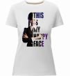 Жіноча преміум-футболка власного виробництва приталеного крою. Виготовлена з якісної тканини (95% бавовна, 5% еластан) — щільна, м'яка та приємна до тіла. Принт Wednesday this is my happy face можна розмістити на грудях, спині або рукаві.